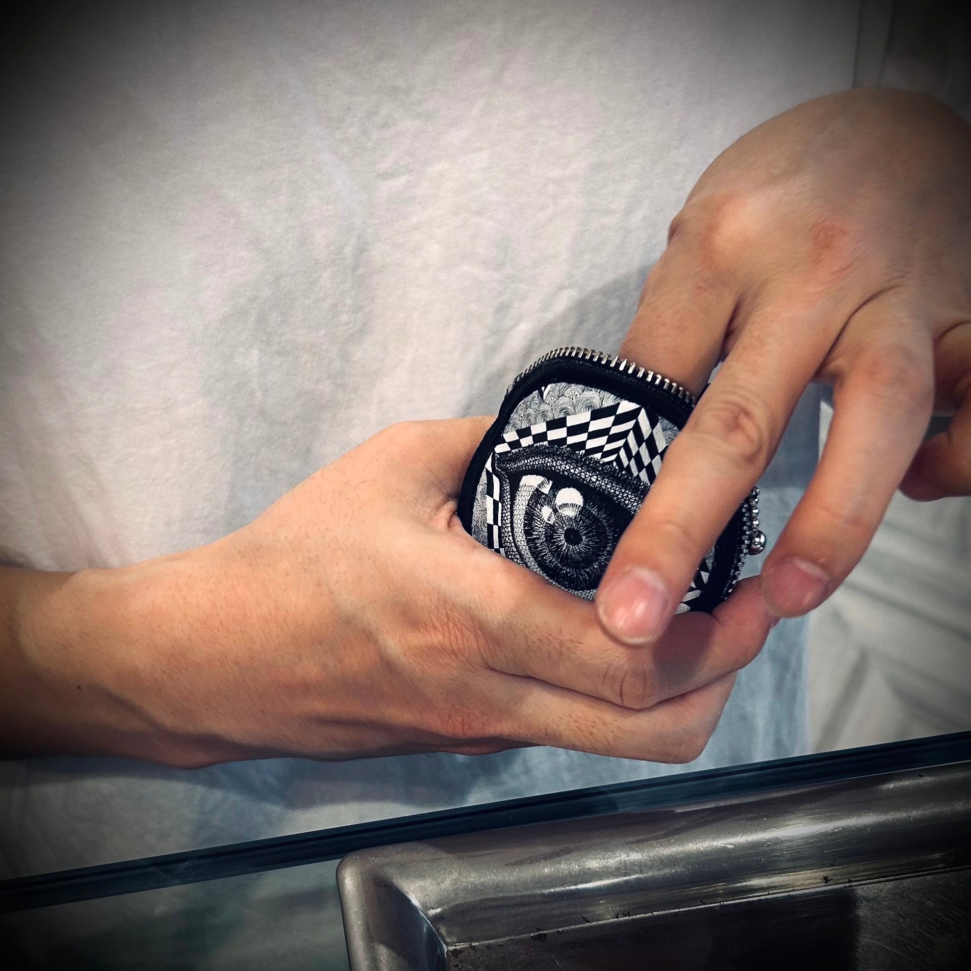 ”MY ICON”ワッペンを使用した、コインやアクセサリー等が入れられる小物入れ。