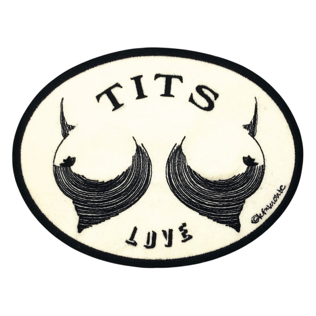 線のみで描いた胸を刺繍し、手書き風ワッペンにしました。