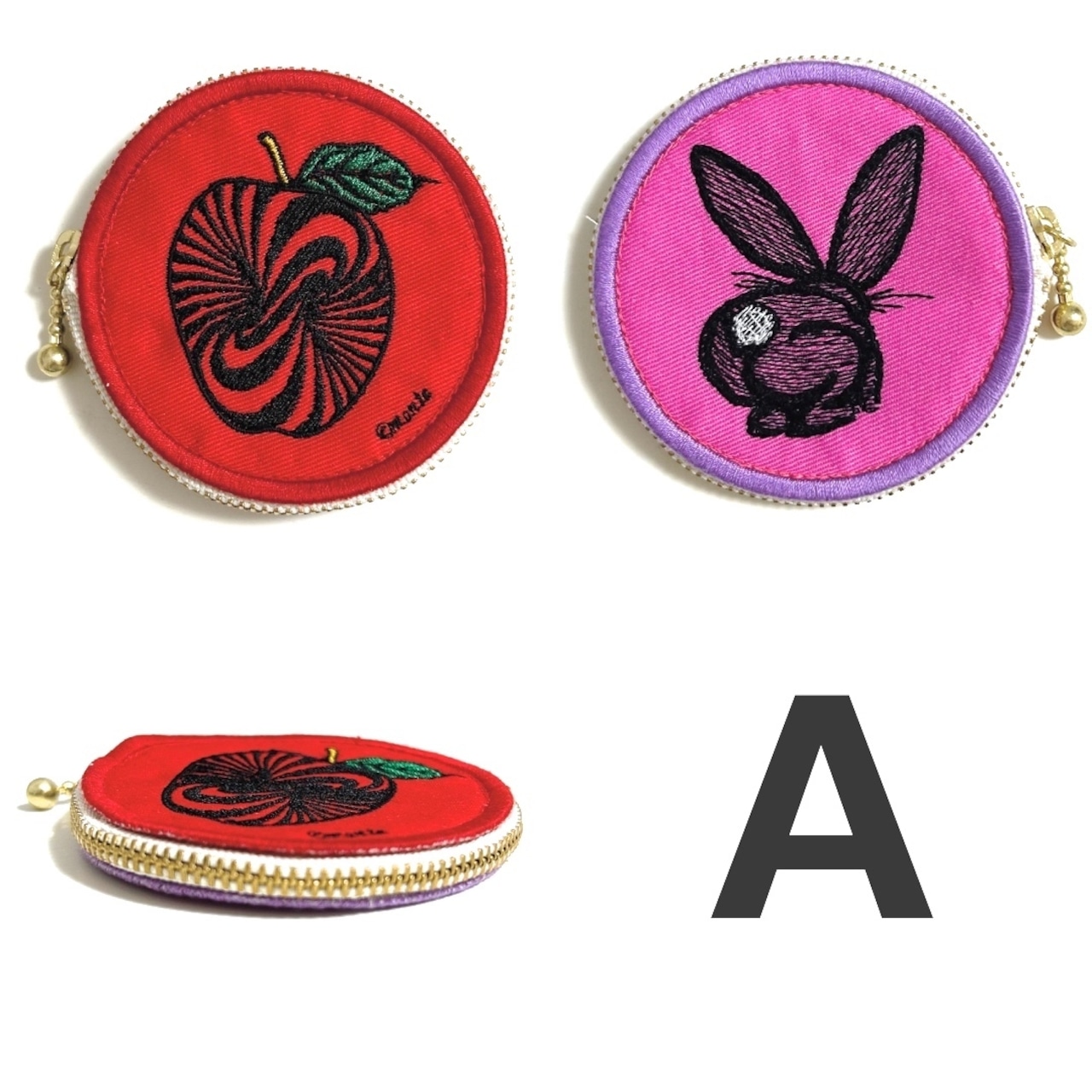 ”MY ICON”ワッペンを使用した、コインやアクセサリー等が入れられる小物入れ。